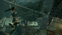 Det var någonstans i äventyrets sista tredjedel som jag insåg att Crystal Dynamics började tillämpa nya tricks för att få mig att reagera på element de ville att jag skulle uppmärksamma. Som om inte detta var nog valde dem även sen att inte fortsätta vara övertydliga. Exemplet jag vill använda är när Lara vid ett tillfälle i hastigt tempo åker linbana och slänger sig mellan korsande replinor. Vid första s.k. linbytet går tempot i slowmotion medan skärmen skiftar till fokusläget då världen blir grå och specifika punkter av intresse lyser upp i miljön. Samtidigt uppenbarar det sig en knapp som indikerar vad jag behöver trycka på för att släppa linan. Fyra sekunder senare är det dags igen men denna gång nöjer man sig med att bara starta slowmotion- och fokus-läget. Resultatet blir en väldigt häftig färd nerför berget med växlande tempo där man känner att man ha full kontroll.
